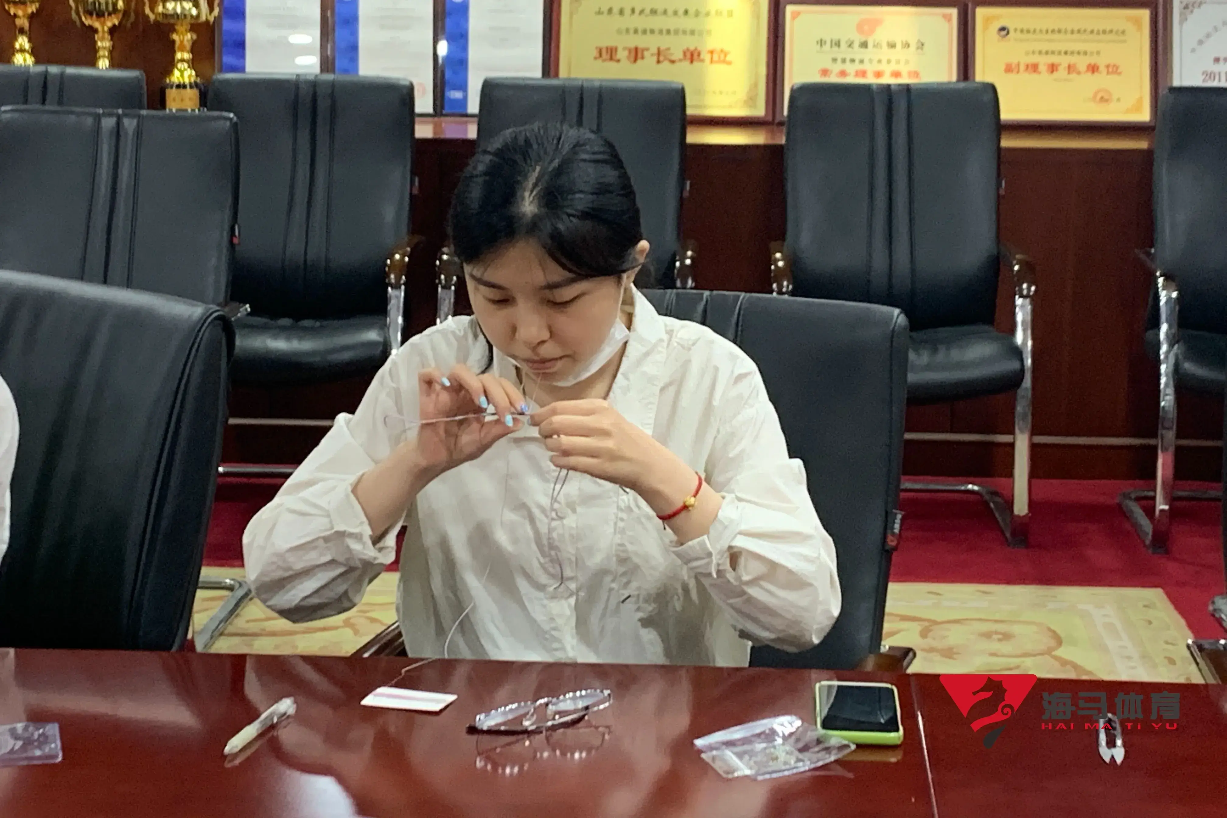 制作前,万向娱乐的手工老师首先介绍了端午的习俗以及端午节制作香囊与五彩绳的来历,让大家在活动前了解端午的民俗文化,手工老师将精心准备的有着美好寓意的五色彩绳、色彩绚丽的香包袋以及清香的艾草薰衣草,送到职员手中,携手制作香包和五彩绳。